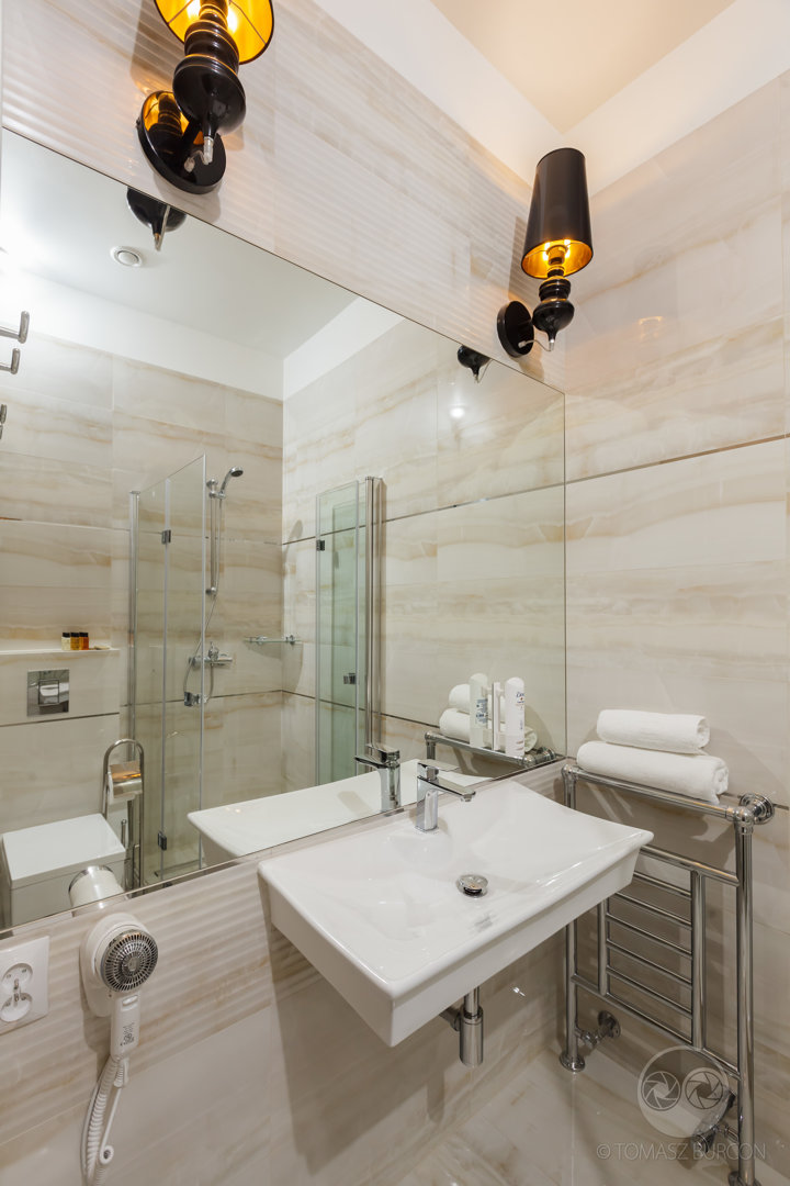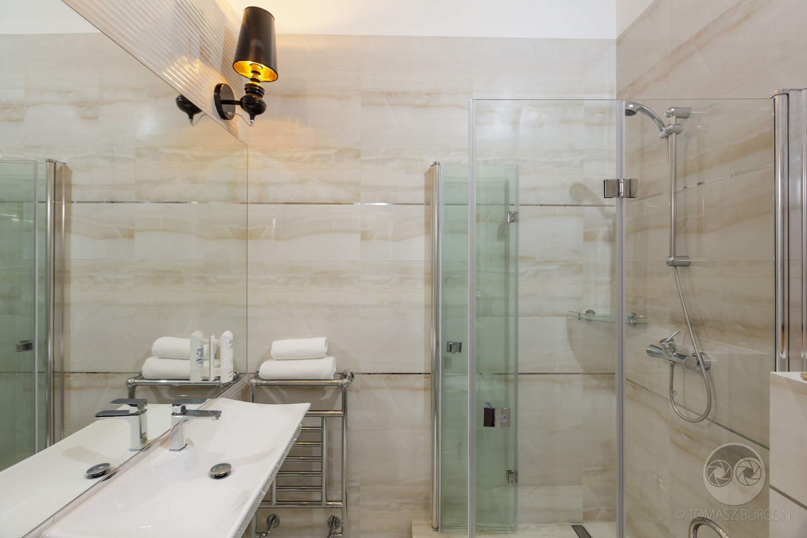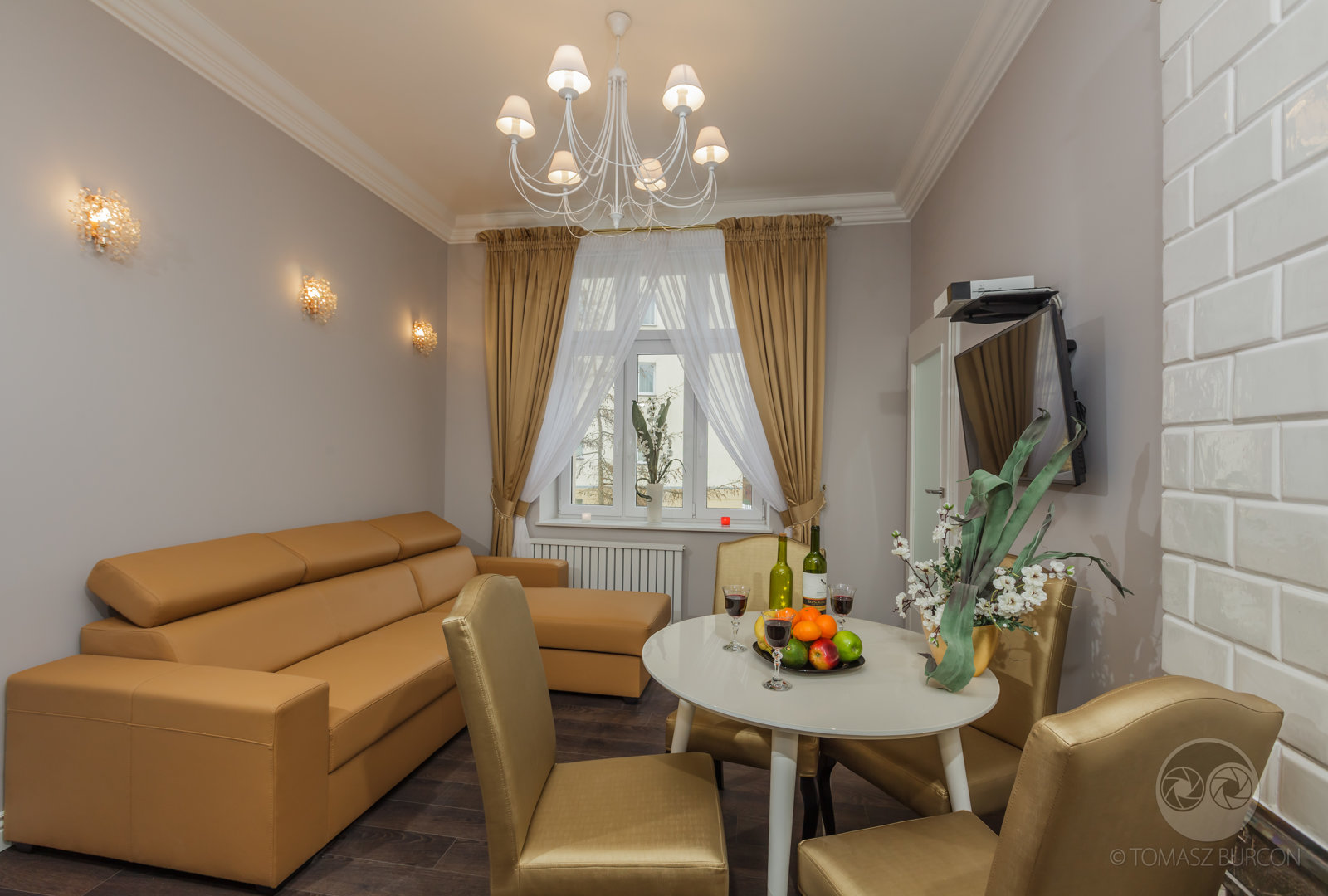 Wnętrze – tak jak nazwa – dostojne, ale tradycyjne. Pełne ciepła – ale subtelne. Zaaranżowane, by w nim wypocząć. Zrelaksuj się po podróży w apartamencie dla wymagających. Wykończony materiałami wysokiej jakości, wyposażony we wszystko, co niezbędne: kuchnię z naczyniami i sprzętem AGD, telewizor wkomponowany idealnie w te stylowe wnętrze, kablówka, internet. Po carsku – jakościowo i ze smakiem.
